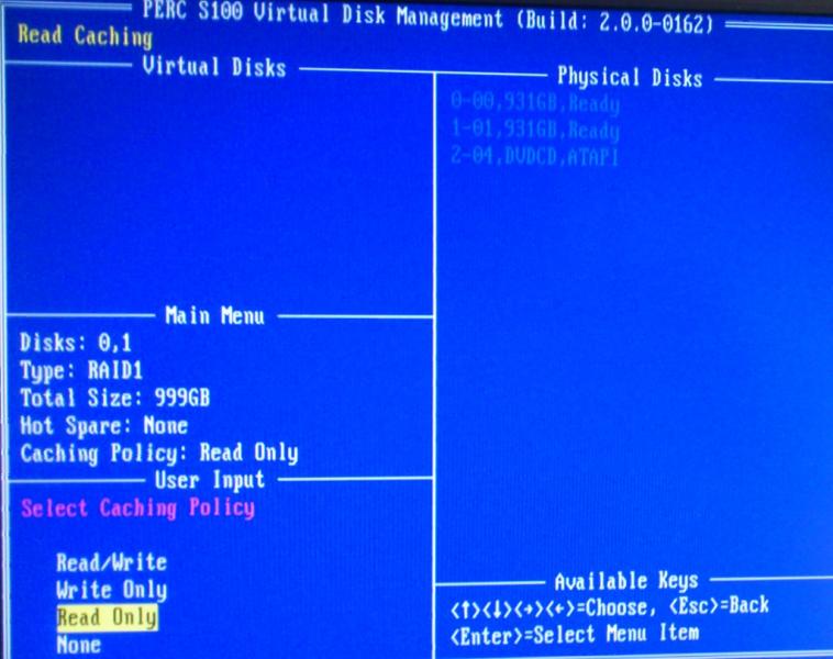 Ahora vamos a configurar el Caching Policy para este Virtual Disk, en este caso, escoger la opción Read Only.