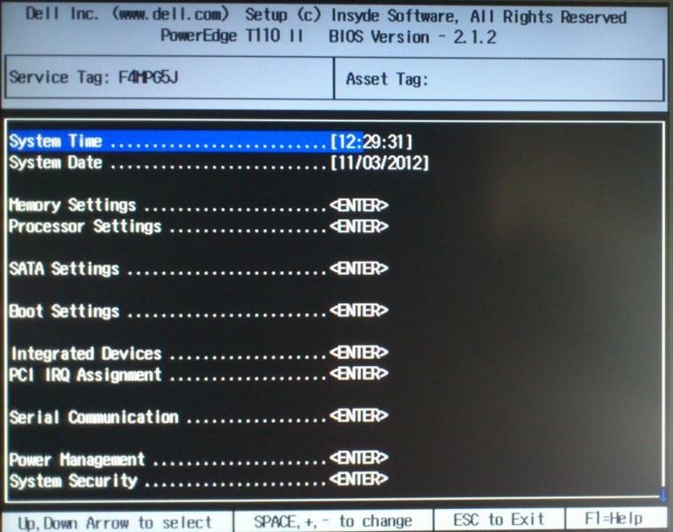 Al arrancar el servidor DELL PowerEdge T110 II, es necesario configurar la BIOS, para activar Virtualization Technology.